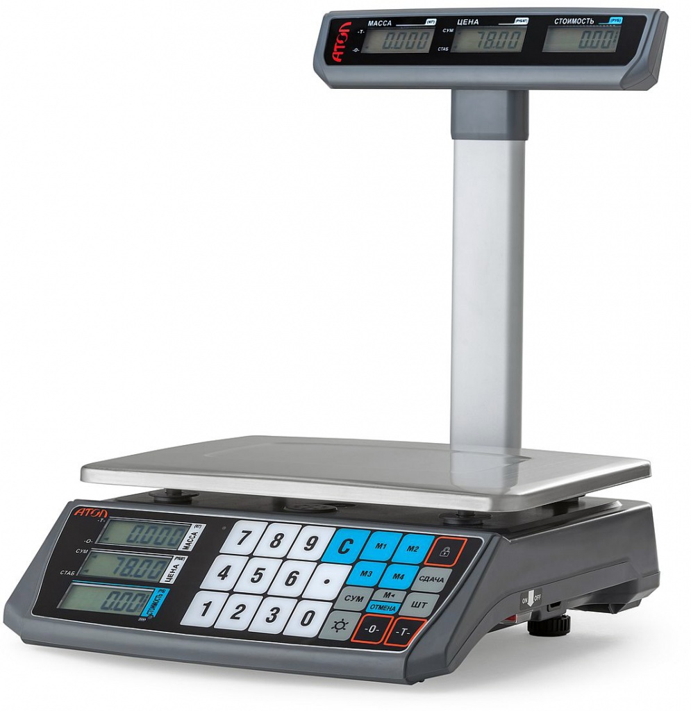 Весы АТОЛ MARTA располагают базовым функционалом: они взвешивают товары, рассчитывают стоимость и сдачу. Изготовитель запрограммировал четыре клавиши для быстрого вызова цены. Общая стоимость рассчитывается автоматически исходя из массы и цены за единицу товара, что исключает ошибки персонала. Расчет сдачи экономит время покупателя и продавца, помогает сократить очередь.
