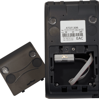В модификации с системной платой АL.P220.40.000 rev. 1.2 реализуется подключение денежного ящика через разъем RJ 45. Касса АТОЛ 30Ф, как и другие фискальные накопители, не имеет устройства ввода. Полноценная работа возможна при подключении к внешнему оборудованию.