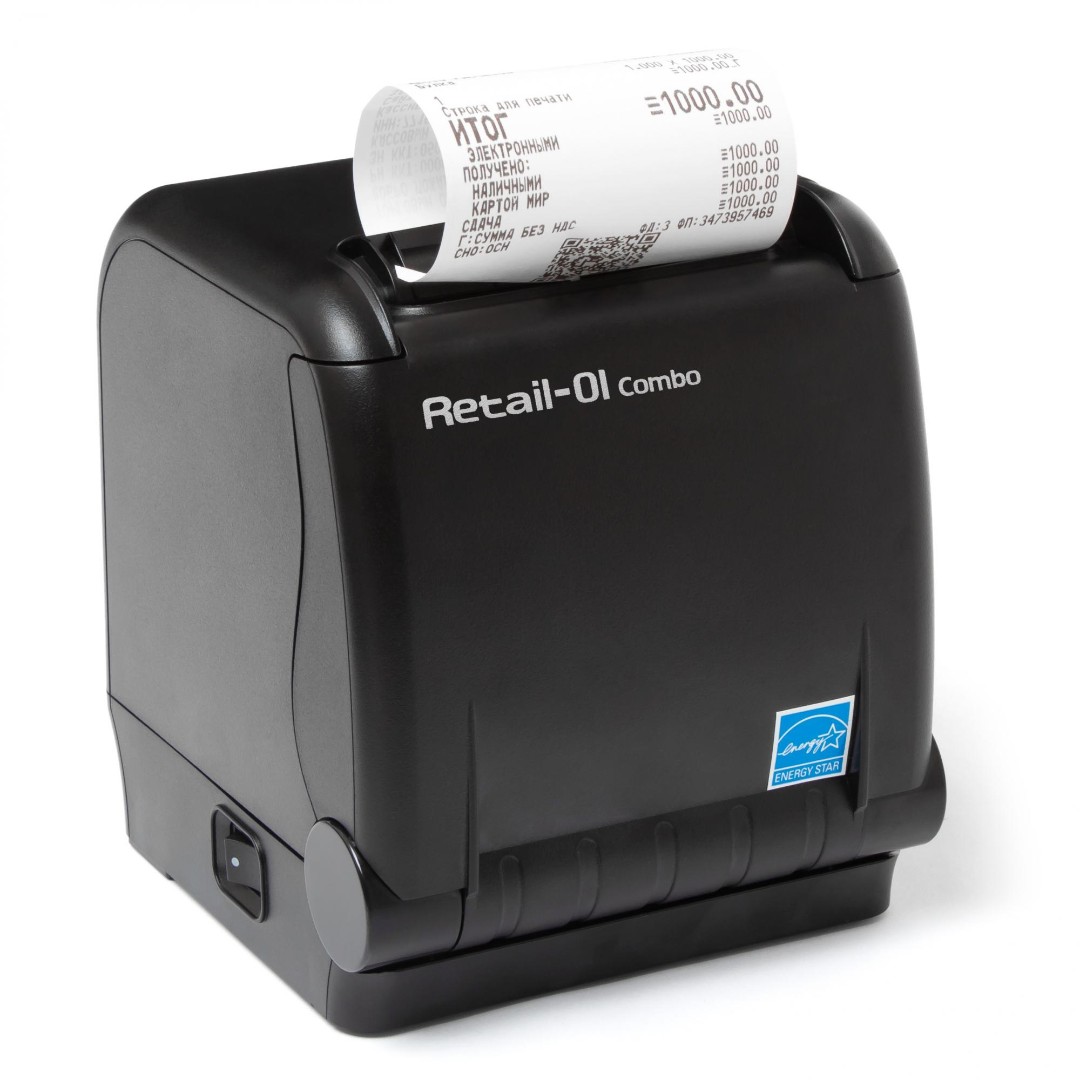Купить Ритейл-Комбо-01Ф в Москве недорого. Несмотря на скромные размеры фискальный регистратор РИТЕЙЛ-КОМБО-01Ф печатает со скоростью 220 мм/сек на чековой ленте шириной 80 мм. Ресурс печатной головки составляет 150 км. В числе интерфейсов: RS-232, RJ-12, USB, LAN. Утройство поддерживает такие ОС, как Windows, Linux, Андроид.