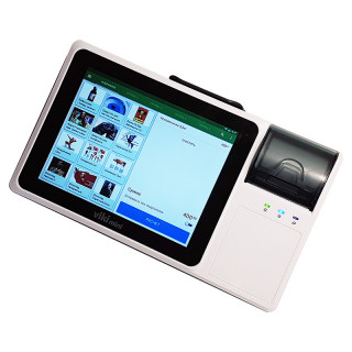 Касса управляется с помощью удобного сенсорного 8-дюймового дисплея. Также с обратный стороны кассы имеется небольшой дисплей покупателя, на который выводится информация о текущей операции. Принтер встроенный, термохимический. Печатает чеки шириной 57 мм со скоростью 80 мм/c.