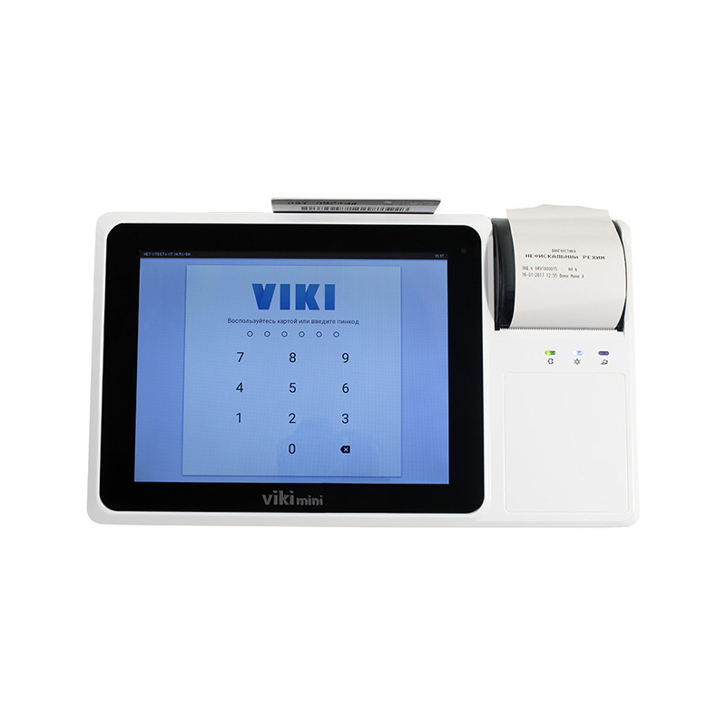 Купить Вики Мини Ф в Москве недорого. Кассовый аппарат ВИКИ МИНИ Ф – это моноблок на базе Linux со встроенным фискальным регистратором, считывателем магнитных карт, дисплеем покупателя и сенсорным экраном. В терминале легко задать изображение для каждой единицы товара. Загрузка товаров в аппарат также достаточно простая процедура (не потребует дополнительного ПО).